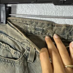 Kora wide-leg jean has a waist-hugging high rise and a loose fit through the legs, This pair is crafted from rigid 11.75 oz. Cotton blended Denim.