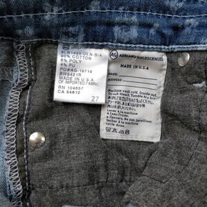 This is a new-with-tags pair of AG x Liberty Art Fabrics Bianca Daisy print shorts. Size 27. New with tags; inner brand tag marked. Super cute! All-over Liberty floral rose print, raw finished hems; front button and concealed zip fastening; two front pockets; coin pocket; two back patch pockets. 1 1/4" side slits. Approximate measurements: