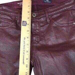 AG Legging Ankle Pants 25R Coated Waxed Jeans Ox Blood Red Skinny Super Sleek