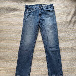 AG Prima Cropped Jeans, excellent used condition. Fit like capris, mid wash, intentionally distressed around hems as pictured. Pet free, smoke free home. Priced to sell.