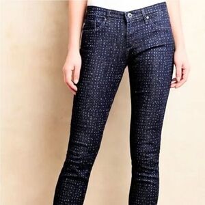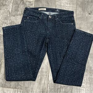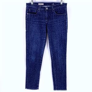 AG Stevie Ankle Polka Dot Slim Straight Leg Mid Rise Jean Blue White 25 x 27