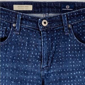 AG Adriano Goldschmied Stevie Ankle Polka Dot Slim Straight Leg Mid Rise Jean Blue White 25 AG The Stevie Slim Straight Ankle Jeans Polka Dot Size 25 with a 27” inseam right at ankle