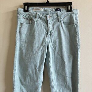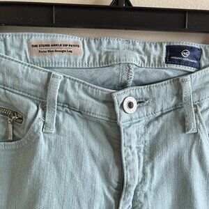 AG Stevie Ankle Zip Slim Straight Leg Jeans Size 28 Petite Mint Green