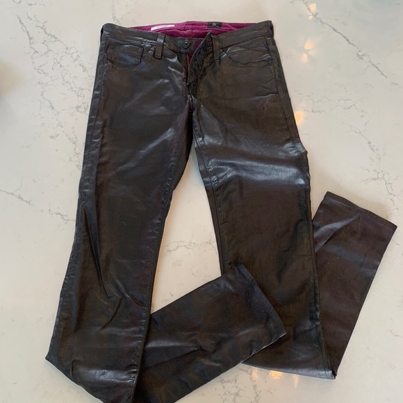 AG Super Skinny Jeans, worn approx 10 times. great condition. Color is deep wine/purple. Coated leather feel and look. size 26 R