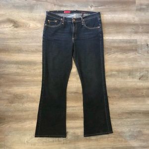 Dark wash bootcut jeans. Button and zip fly. In great used condition. AG Adriano Goldschmied, size 32.