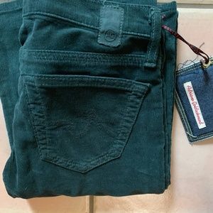 Sexy and flattering boot cut, contemporary, low-rise, forest green, fine cords. brand new with tags.