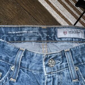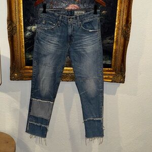 AG The Boyfriend Slouchy Slim Raw Hem Ankle Patchwork Jeans Size 26. Medium wash, not stretchy.