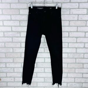 AG The Farrah High Rise Skinny Ankle Raw Hem Jeans in Black Size 28