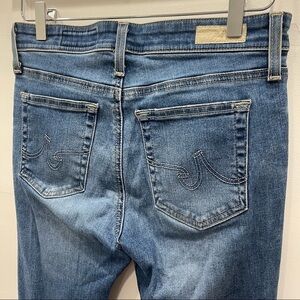 AG The Farrah Skinny Ankle High-Rise Jeans Blown Out Knee Raw Hem Size 28R