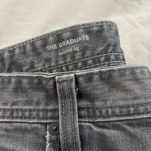 The Graduate Tailored has a mid-rise waist that stays relaxed from the hip to the knee tapering at the bottom.
