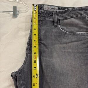 Jeans are in good condition. Fabric is with a faded look throughout.