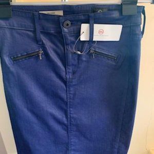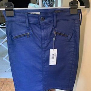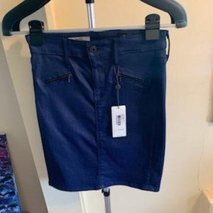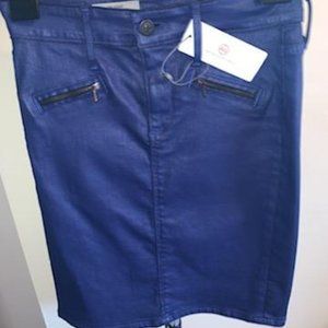 Rounded zip hip pockets lend a polished look to an AG Adriano Goldschmied pencil skirt. Super stretch denim ensures a figure-hugging fit. Single-button closure and zip fly.