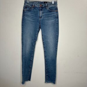 AG The Prima Ankle Raw Hem Cigarette Ankle Med Wash Blue Skinny Jean 27 Zip Fly