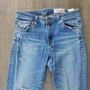 AG The Prima Crop Cigarette Distressed at knees Jeans size 28 Light Denim