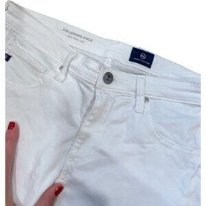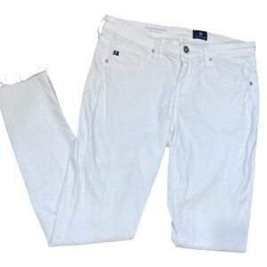 AG The Skinny Ankle Jeans Raw Hem White 27