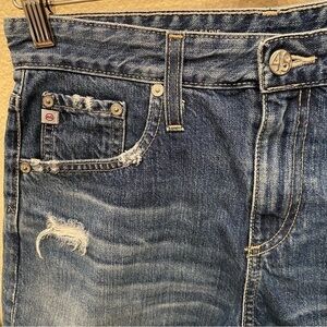 AG Women Blue The Sadie High-Rise Ripped Raw Hem Jean Shorts Size 27R