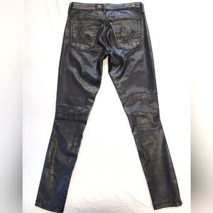 AG Women's Metallic Black Super Skinny Ankle Leggings Pants, sz 26R