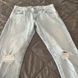 AG faded, distressed ‘Ex boyfriend slim’ in cloudy / faded blue.