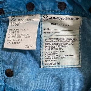 AG the Stevie Blue Polka Dot Pants corduroy women 29R slim straight Y2K retro