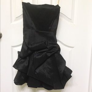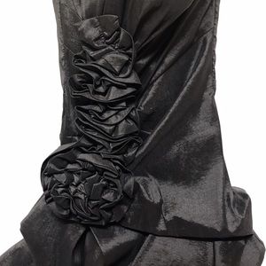 This is a small sized black cocktail dress from A'GACI. It has only been worn once. The dress has a beautiful back rose pattern on the right and a zipper on the left side. The fabric is fluffy and the bosom area is padded. Smoke free home. No trades
