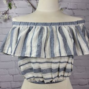 A'GACI OFF SHOULDERS RUFFLE CROPPED TOP sz M(+390)