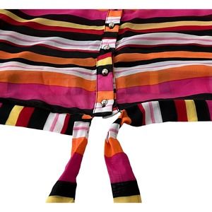 A'GACI A'GACI A'GACI V-Neck, Front Tie Tank Top/Sleeveless Blouse Womens, Size: Medium (based on PTP measurement - size tag is missing) Color: Multicolors - Pink, Orange, Yellow, White, Black Horizontal Stripes Pre-Owned/Gently Used - Very Good Condition - no rips, tares, stains!
