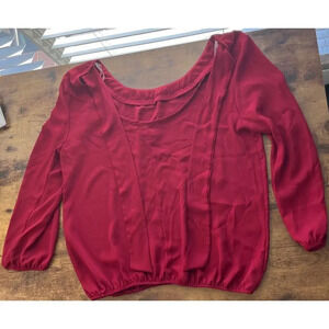 A'GACI Womens L Red Open Back Tie Sheer Embellished Blouse