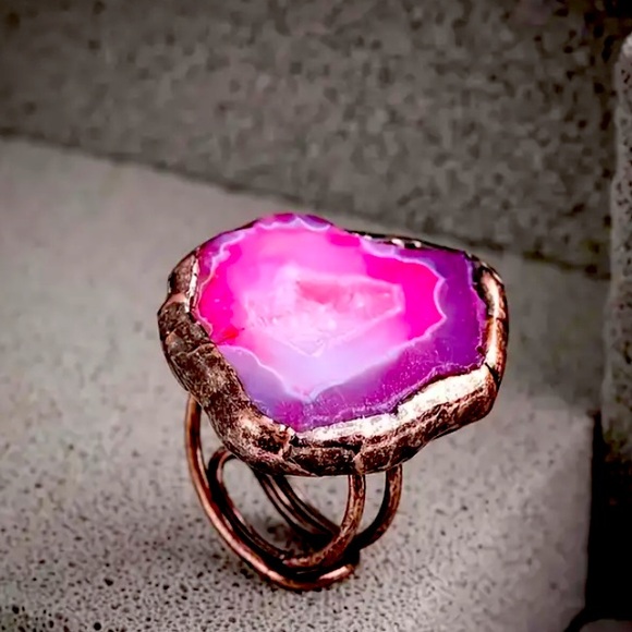 Natural Agate Stone Ring - Vintage Adjustable Third Eye Chakra Protection - Handmade Mental Health Healing Crystal Gemstone