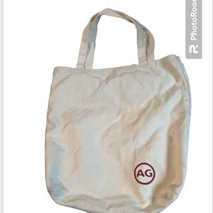 AG Adriano Goldschmied Ivory Canvas Tote Bag w/Burgundy AG Jeans Logo Tote