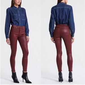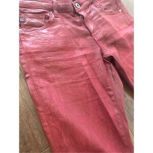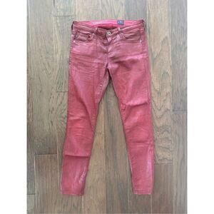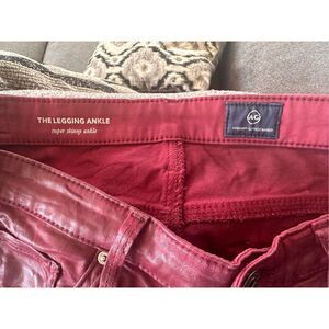 AG Adriano Goldschmeid Leatherette Coated Super Skinny Ankle Jeans in red burgundy wine. Faux leather shine coating. Size 27 excellent condition