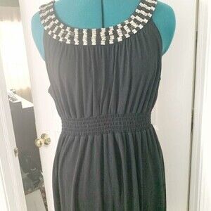 AGB Beaded Neckline Sleeveless Casual Lightweight Summer Dress
