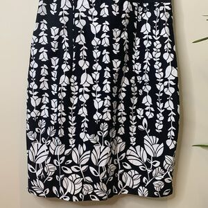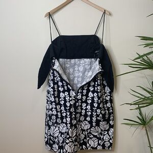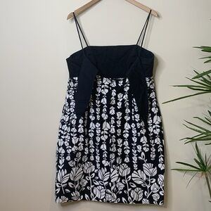 AGB | Black White Floral Spaghetti Strap Peekaboo Bow Hidden Zip Sheath Cotton Spandex Dress in size 16