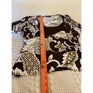 AGB Blouse Size XL Faux Wrap Style Top Brown White Design + Stretch 3/4 Sleeves