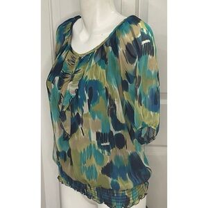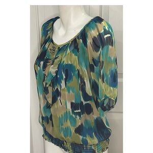 AGB Bouse + Cami Size PL Sheer Multi Colored Short Sleeve Ruffle