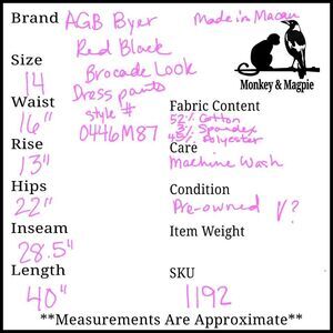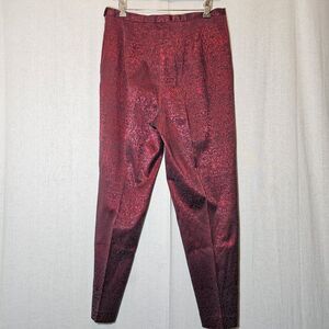 AGB Byer Womens Dress Pant Vintage Size 14 Red Black Brocade Print Shiny Slacks