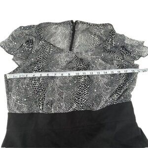 AGB Cocktail Bodycon Dress 12 Puffy Short Sleeve Sequin Snake Skin Black White