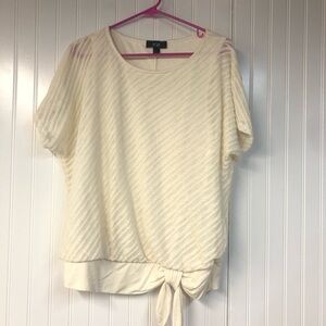 AGB Cream Textured Lace Top with Tie Detail Short Sleeve XL Fairy Cottage
