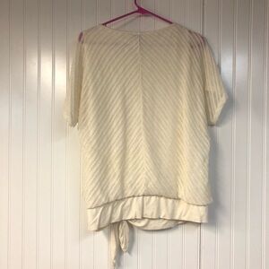 Stylish cream top with textured design. Features a tie detail at the hem. Perfect for casual wear.