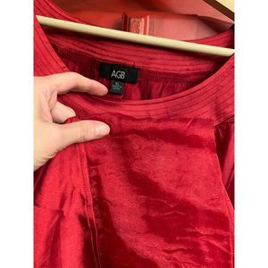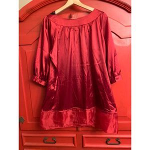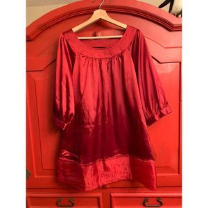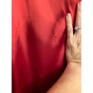 AGB Deep Red Satin Shirt Size XL Tunic Length Bubble Sleeve Holiday Blouse READ