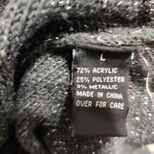 AGB L Gray Metallic Cowl Neck Batwing Sweater Dolman Sleeve Shimmer Knit Top
