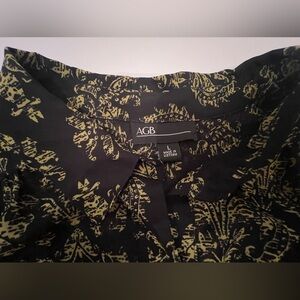 AGB LARGE SHEER BLACK AND LIME GREEN PRINTED BLOUSE. LONG SLEEVES