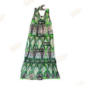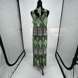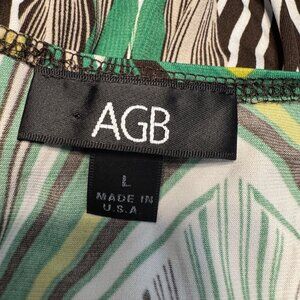 AGB Maxi Dress Womens Size L Tiered Y2K Empire Waist V Neck Abstract USA Vtg