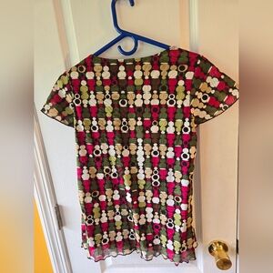 Stylish AGB top with a vibrant multicolor pattern. Features a square neckline and short sleeves. Perfect for casual outings.