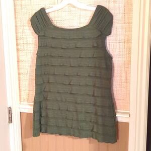 AGB NWT Moss Green Layered Ruffle Ruch Cap Sleeve Stretch Top Women's Size L
