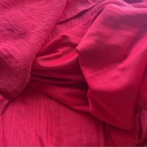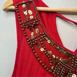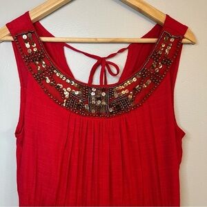 AGB Red Sleeveless Maxi Dress Waistband Lined Sequins Beaded Gauze Sz L Flowy