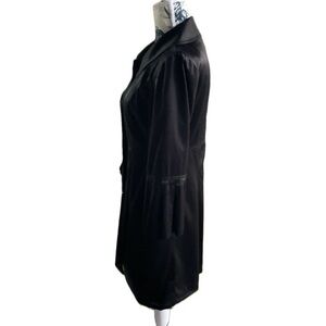 Excellent condition satin femme cover-up trench coat. Silky texture and minimalist nature make it an easy extension to a little black dress that you will actually leave on because sheβs so chic & adorable!