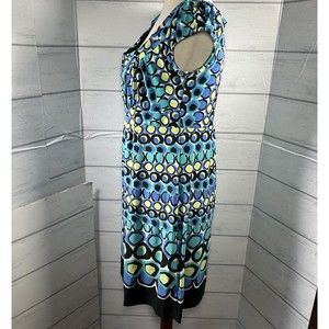 AGB Shift Dress Short Sleeve Lined Geometrical Circle Blue Yellow Size 12 Petite