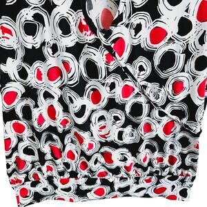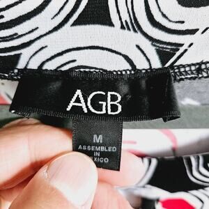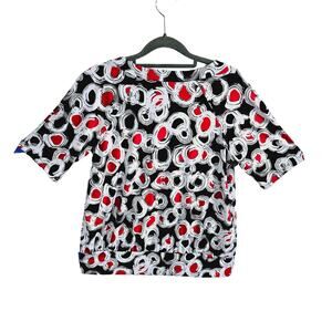 AGB Size M Short Sleeve Keyhole Top Black Red Circular Geo Print Bold Maximalist