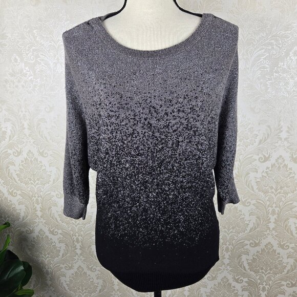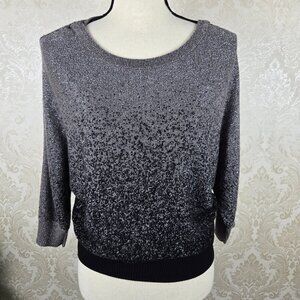 AGB Size Small Batwing Sweater Metaillic Ombre Silver to Black Knit 3/4 Sleeves