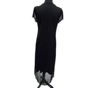 AGB Vintage Black Beaded Cocktail Dress Size 6 Made In USA Sheer Overlay Wedding